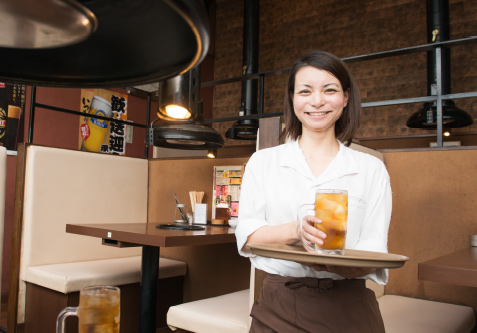 まずはホールでの接客やキッチンでの調理などを経験していただきます。その後、本人の希望と適性に合わせて段階的にアルバイトの採用・管理・育成や、発注業務、売上管理などの運営面での業務もお任せします。